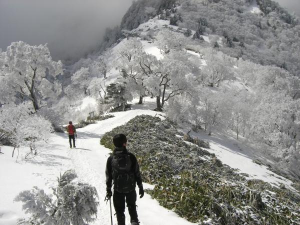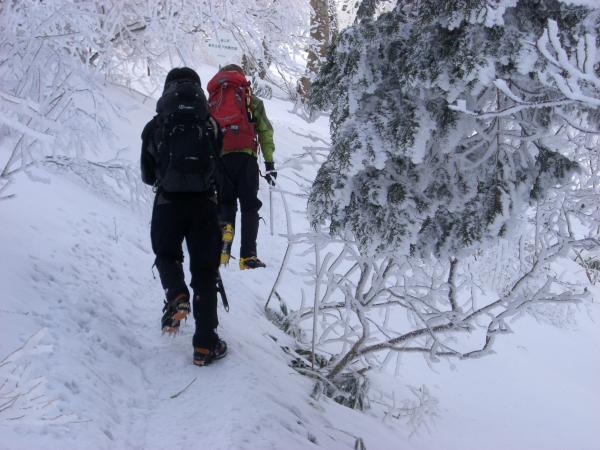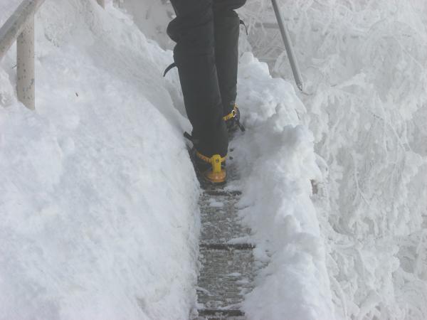 - 成就から八丁はアイゼンなしでも歩けますがだんだん傾斜がきつくなってきますのでこのあたりでアイゼンを付けての歩行をおすすめします。一ノ鎖から三ノ鎖(弥山頂上)までは巻き道に入ります。特に三ノ鎖のトラバースはかなり急斜面になっていますので慎重に歩行してください。これから暖かくなり雪が緩むと滑りやすいので気をつけて歩かれてください。全体的にコース整備されています。