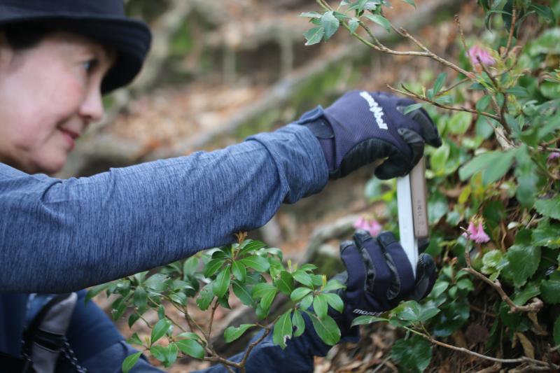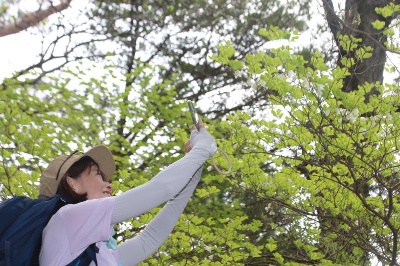 沢を渡り、お花を楽しみ
