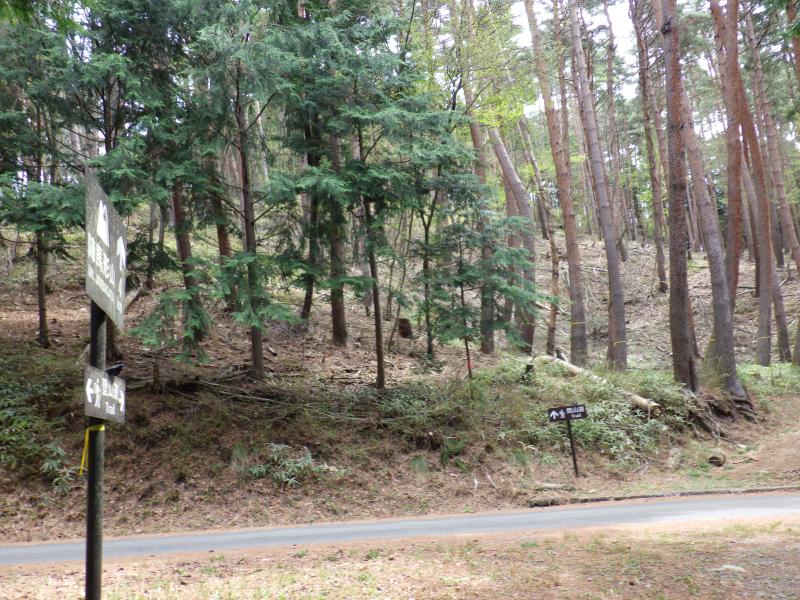 ⑥ここから樹林帯を抜けると、道路が交差し、ここが真の登山口になります