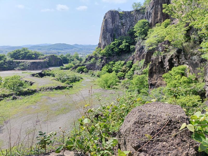 前日の雨で空気が洗われとても気持ちのよい空気と菖蒲やポピー、シャガなど季節の花が道端、畦道、山肌に咲き、新緑を浴び、岩舟山の荒々しさを感じることができて