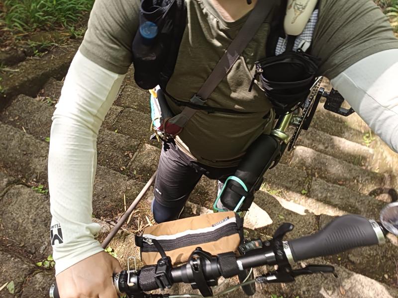 自転車で上がるときは裏参道を登る。表参道はひたすら石段登りになる。