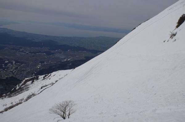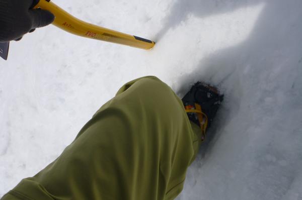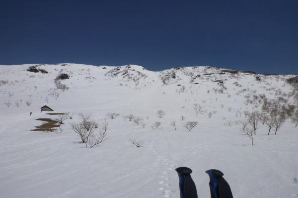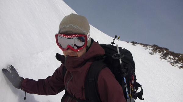 稜線直下の急登部分は、シール歩行では難しかったです。無理せず早めのアイゼンチェンジが必要でした。シールでがんばりすぎ、滑落の危険がありました。