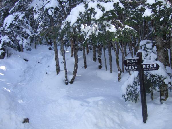 唐沢鉱泉方面は少し雪が深くなっていて、歩きにくかったです。