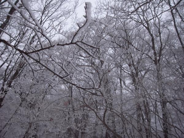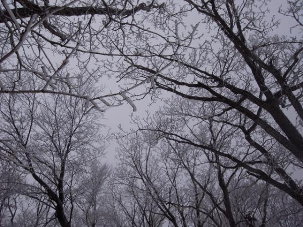 槇寄山からは尾根道を適度なアップダウンを繰り返し2時間程で三頭山に着きました。この日の山頂はマイナス2度!日差しもないので『都民の森』へ急ぎます。下りは1時間程。