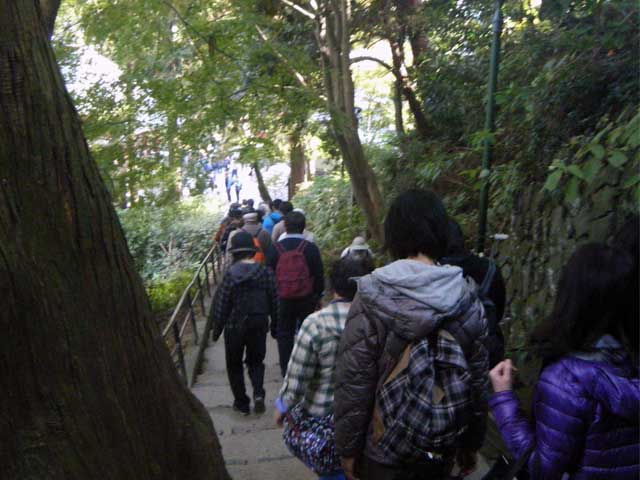 ケーブル駅の脇から6号路を上がる。道幅は所々狭くなる以外は二人並んで歩けるほどの幅。