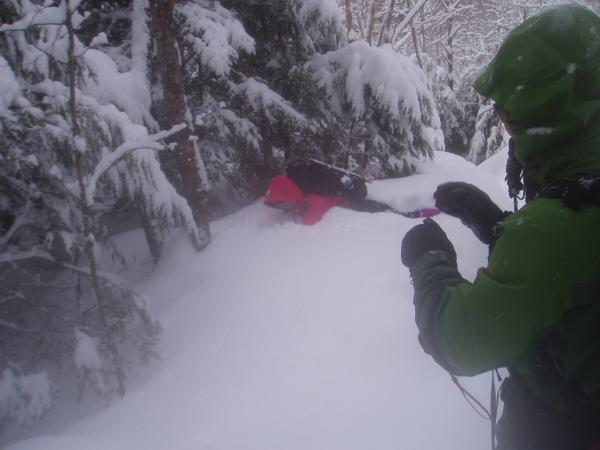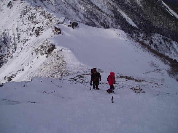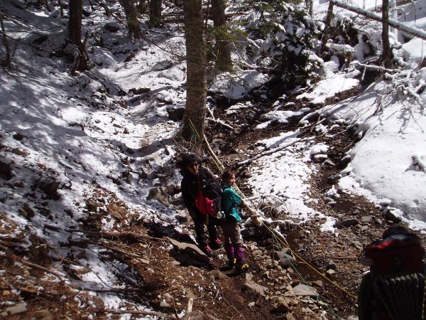 行者小屋到着が少し遅れたため、時間を考え、急登の地蔵尾根からアタック開始。