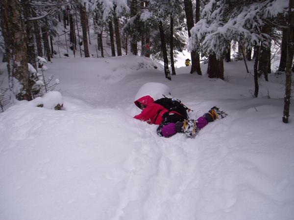 地蔵尾根上部の階段は、雪が少なくって、所々見えている状態です。