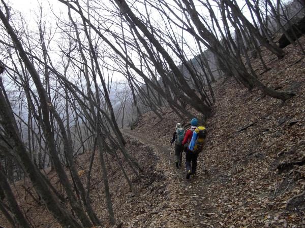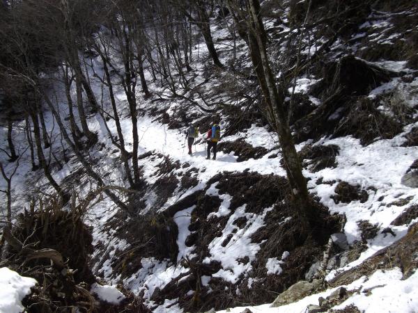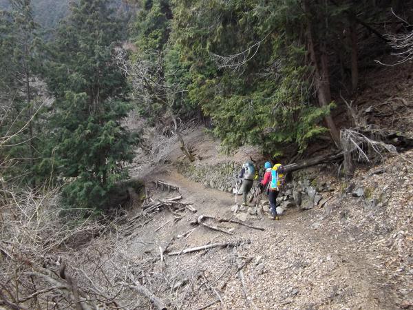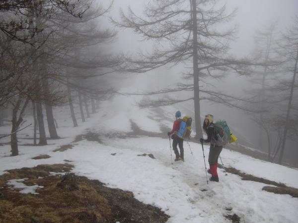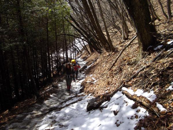 - 鴨沢から七ツ石小屋までの道は一部凍ったところもあるが、ほとんど雪がないか、解け出している。