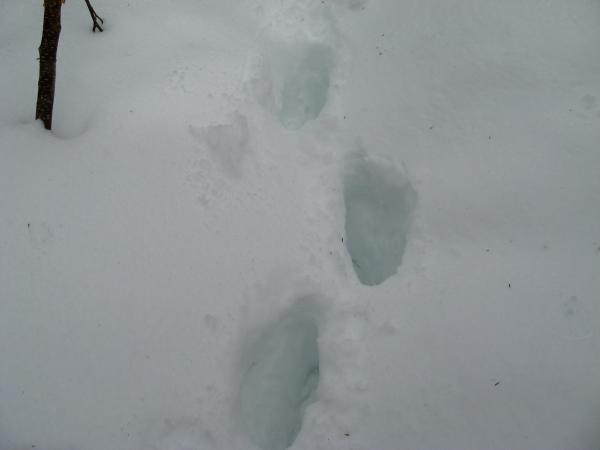 帰りは下る勢いがあるので、何度も雪に足が突き刺さりましたが無事に下れました。