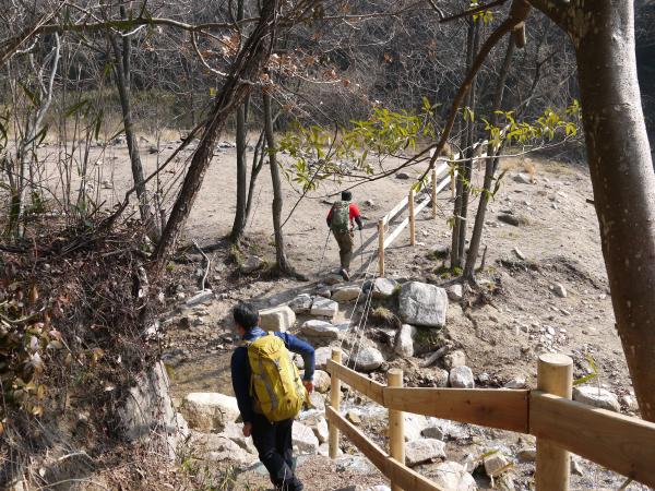 - 杣谷登山口からほんのわずか歩くと砂防工事で登山道は迂回コースをとります。昨年来、これが定着した道となっていますが歩きやすさは何ら問題ありません。
