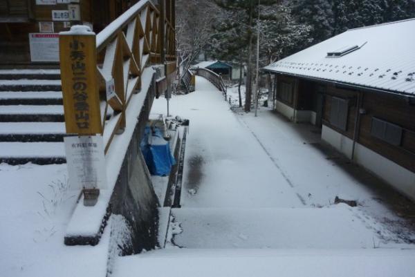 中央管理棟(冬期は無人?)に登山届けを出してください。
