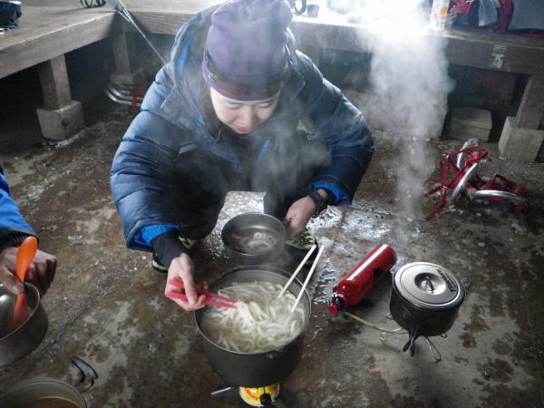 山頂には避難小屋があるので、冬場でもゆっくり昼食をとることが出来ました。