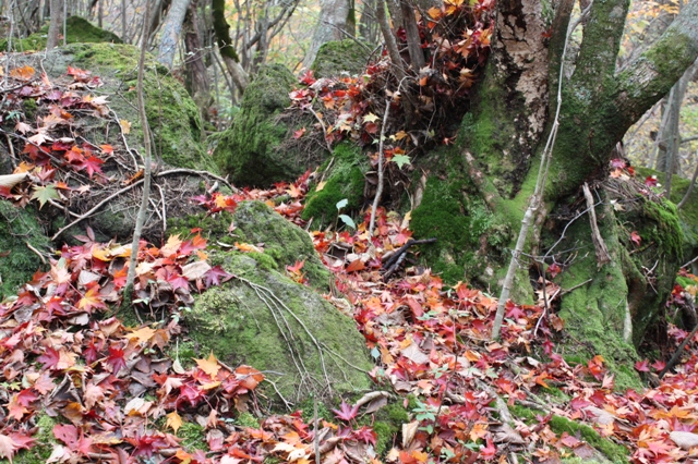 - 長者原からボウガツルまでののんびりルート。紅葉はボウガツル辺りまで下りてきてます。夜は寒く霜が降りて、日中に融けてしまっているので、コースはぬかるみがたくさんありますので、スパッツの着用をオススメします。滑らないように注意して安全登山をお願いします。気温は10度きってましたので、防寒具をしっかり持っていきましょう。長者原入り口から雨ヶ池の手前くらいまで、登山整備の工事をしていますので、気を付けて歩きましょう。