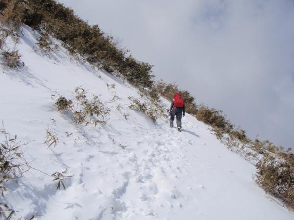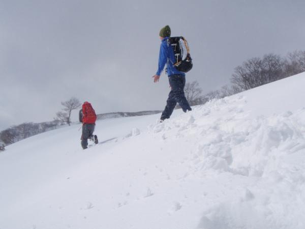 山頂付近はとにかく風が強く、春山とはいえ油断せずに、体温保護のレイヤリングを意識したいものですね。