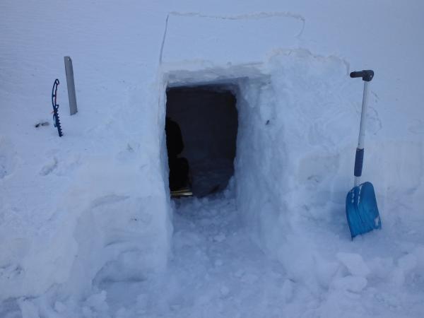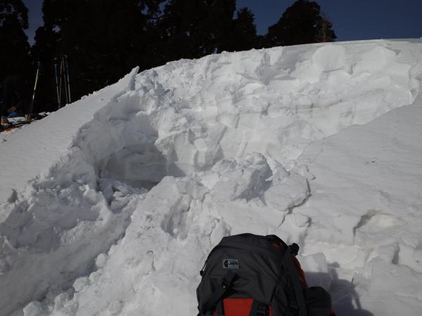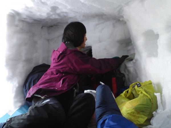 取りあえず2本程滑りを楽しみ、約3時間でかなり立派な雪洞を作りました。