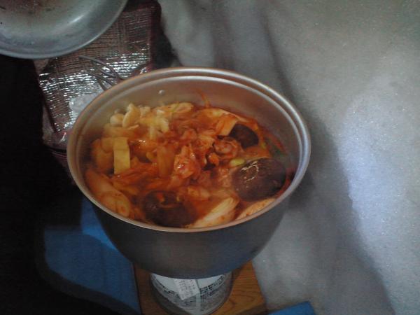定番のキムチ鍋です、チーズを入れボリュウームたっぷり、おなかもいっぱいになったので気持ち良く眠れます。