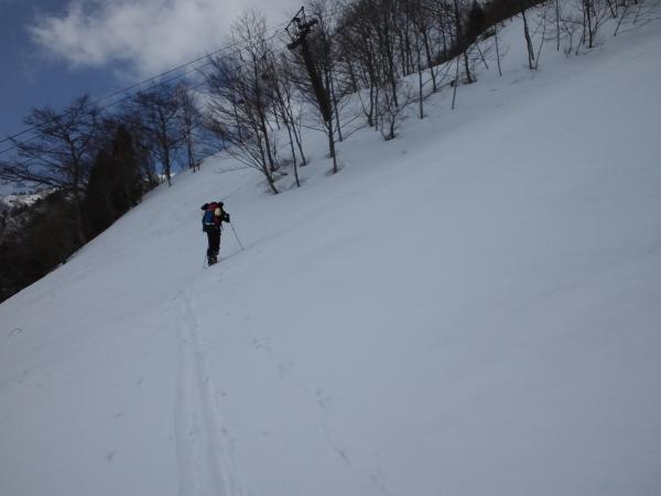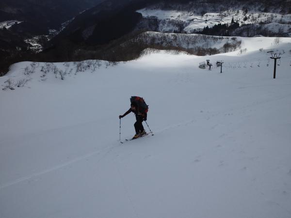 流れ尾に乗り込み、そのまま流れ尾をゲレンデトップまで歩きました