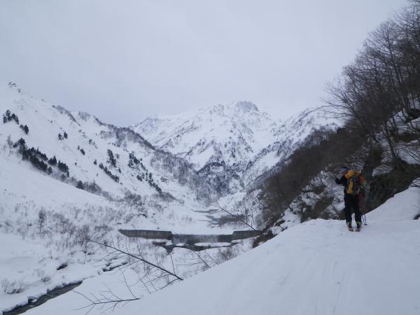 川を渡り、急峻な斜面をシールを効かせながら歩いていきます。