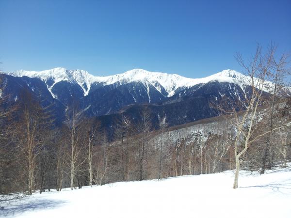 初日は穏やかな天気で林道から時々見える、白峰三山が綺麗でした。