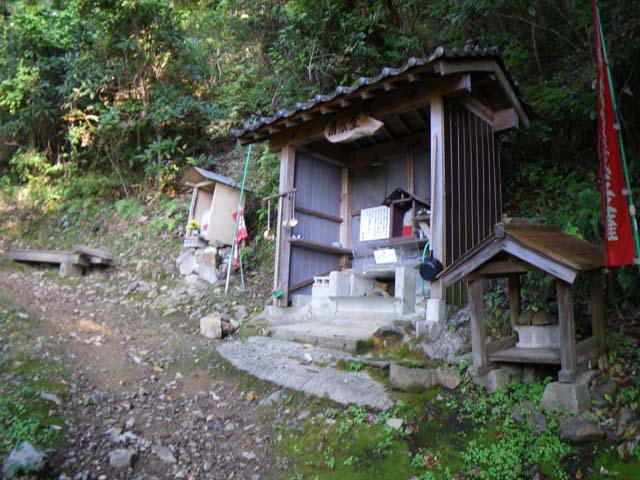 ・赤石バス停からすぐ国道を離れる道が正面にありますから、進むと北側に進み、JRの踏切を越え、坂道を時よりある標識を頼ると、赤い幟のかかった石仏と虚空蔵菩薩参道の案内があり、ここが登山口となる。