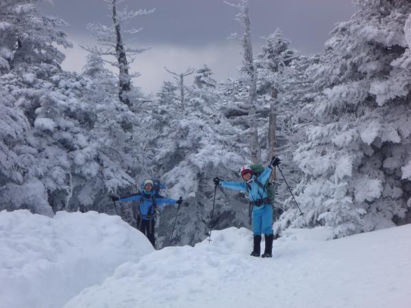 - 全体的に登山道はトレースもしっかりと付いています。また気温が低く雪は、しっかり締まっており歩き易い状況でした。中山展望台・東天狗岳・西天狗岳の稜線上は、強風が吹いており、バラクラバを通して肌をさす寒さが感じられました。特別危険箇所は有りませんが、体温調整をはじめ、まだ春山気分のスタイルは差し控えた方が賢明と思えます。