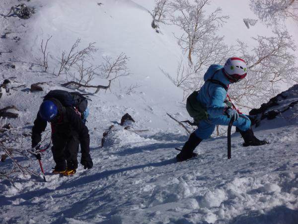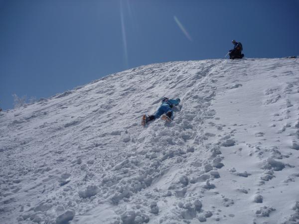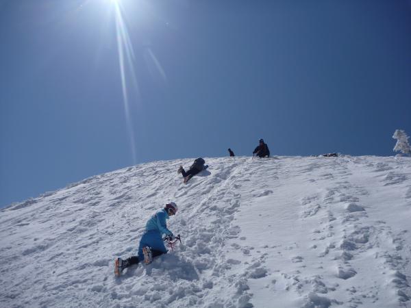 雪質は良く、しっかりと締まっているのでアイゼン・ピッケルワークといった、雪山歩行の基礎訓練には適した感があります。