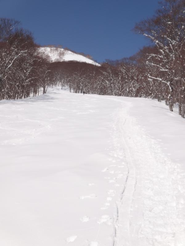 ハイクアップも1時間30分程度と短く、良質な雪質で滑りも楽しめるということで、地元ではポピュラーなルートです。