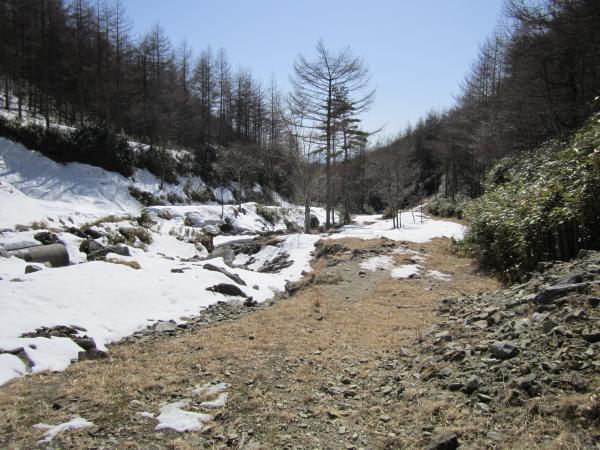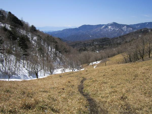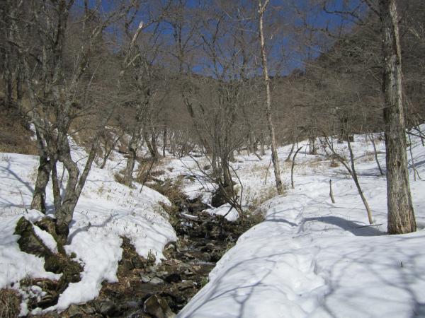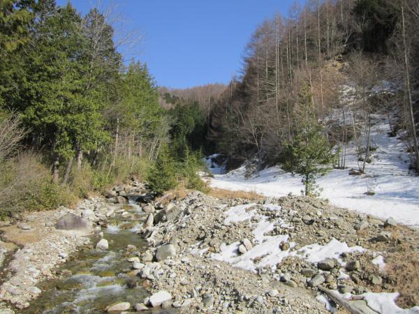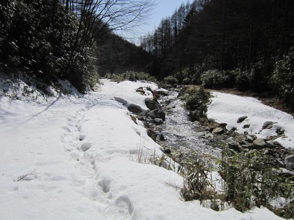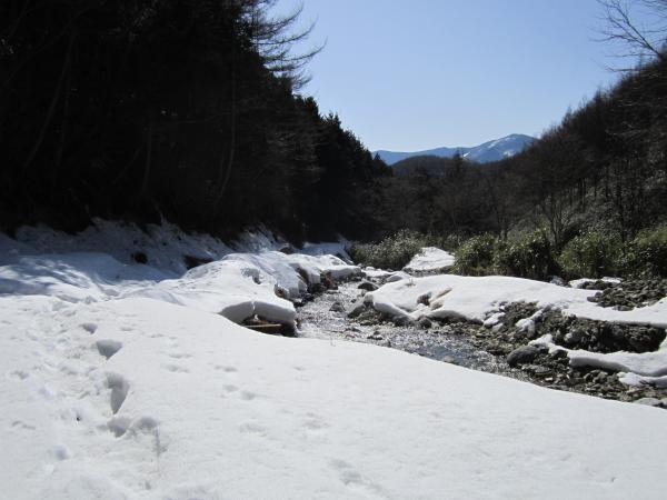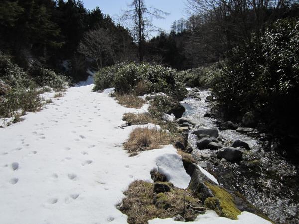 春めいた晴天のなか、雪解けの進む静かな沢筋の道をゆっくりと辿り、奥秩父の雁峠と笠取山を訪れ、白く輝く富士山と南アルプスを望んできました。