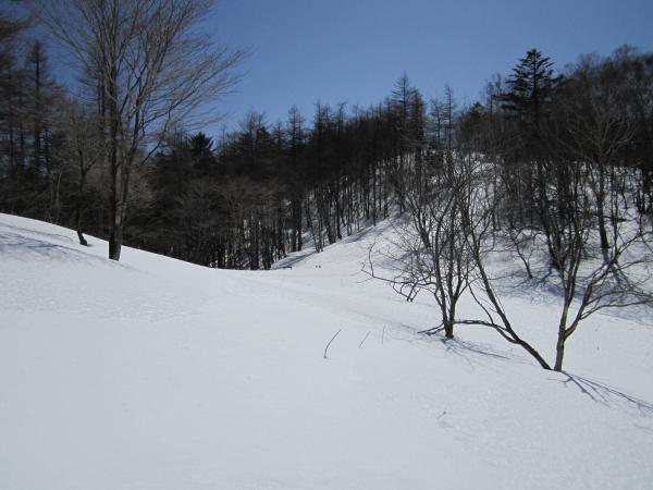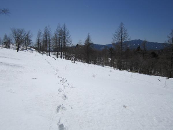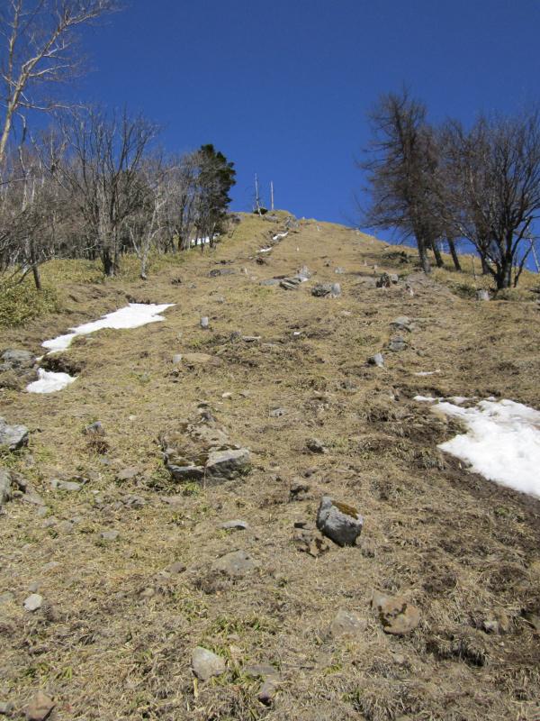 訪れる人のとても少ない静かなルートですが、赤布の目印はしっかりとつけられていて、南側に面しているためとても明るく、傾斜が稜線まで緩く長く続いているので、トレッキングビギナーの方にも歩きやすい道ではないでしょうか?