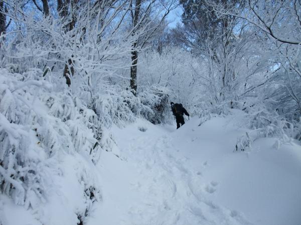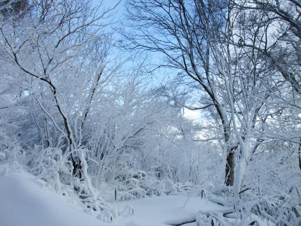 ただ、今年初のふかふかの雪で、鎖場で撤退後の折り返しの道は晴れたためとても霧氷が美しく、きてよかったと思いました。