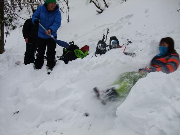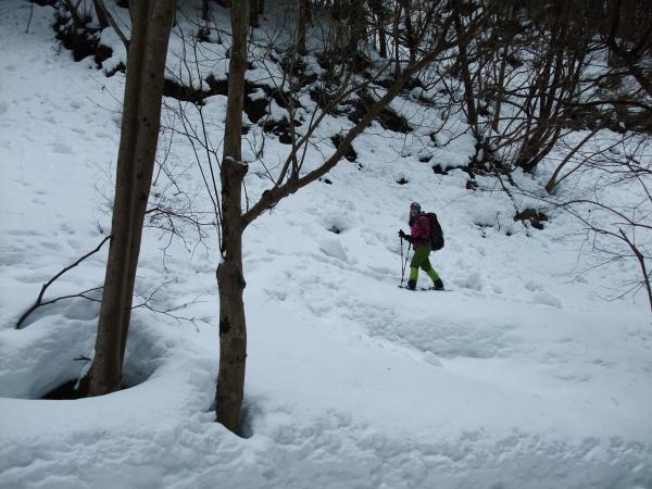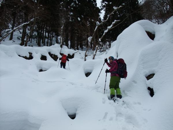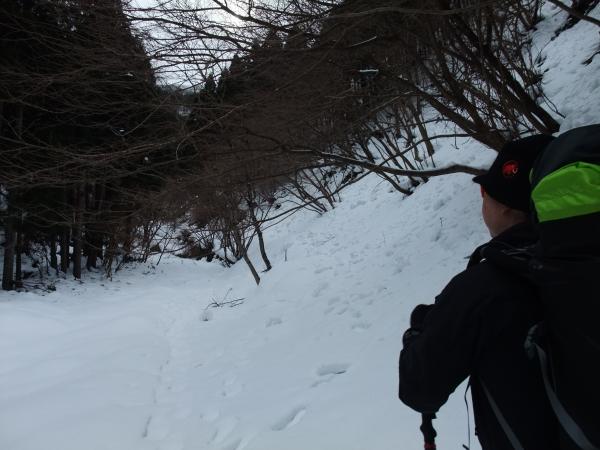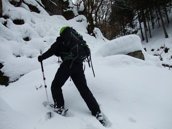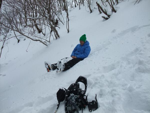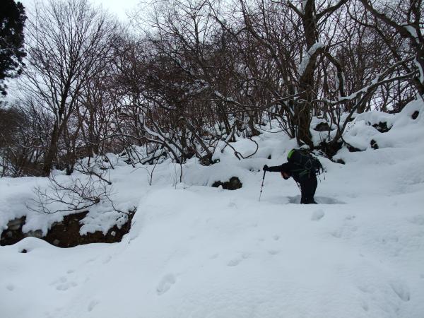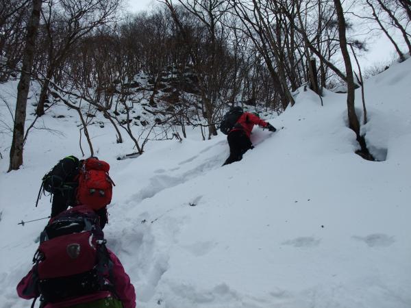 上にむかうにつれ、積雪もふえ、ラッセルも必要で、急坂に苦戦する場面もありました。
