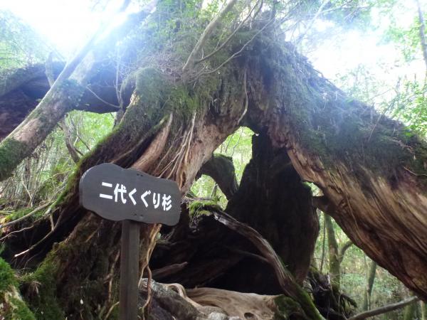 白谷雲水峡(7:00)→原生林道→苔の森(9:00)→太鼓岩(9:40)→楠川分かれ(10:30)→大株歩道入口(12:00)→縄文杉(13:40)→新高塚小屋(15:40)泊