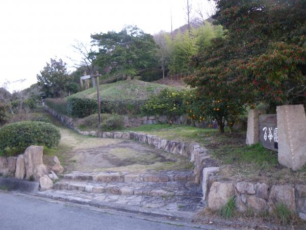 ・重井西港からまっすぐ行くと、県道366号幹線道路に出る。これを右折、看板通リに進むと、ガソリンスタンド手前で左折すると、フラワーセンター。これを右折し、すぐに左折すると百華園。ここからも登れるが、右折して、しばらく行くと駐車場に出る。