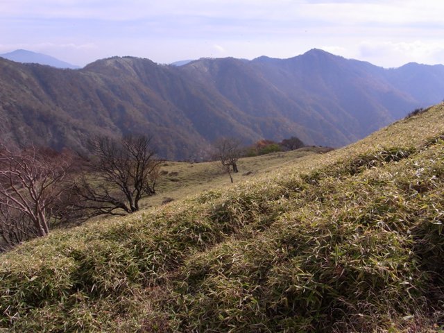 塔ノ岳から丹沢山は緩やかな登りと、木道を歩けばあっという間着きます。丹沢山から急坂を下り鞍部を越えると笹原あたりにでます。さらに登って不動峰に着き、もう少し登るとブナ林が現れてきます。鬼ガ岩ノ頭から蛭ガ岳へはクサリの付いた下り坂を降り登り返して山頂に到着します。