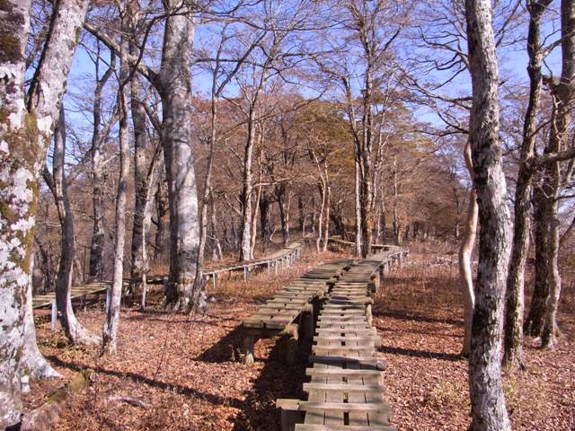 蛭ガ岳から檜洞丸への道は下る途中にいくつかクサリ場があり、秋は落ち葉で滑りやすくなるので注意してください。青ガ岳山荘から檜洞丸山頂を過ぎるとしだいに木道が現れ歩きやすくなります。展望園地からしばらくいくとゴーラ沢出合いへ。沢を渡り、巻き道を行くと林道に出て道沿いに進めば西丹沢自然教室のバス停に到着です。