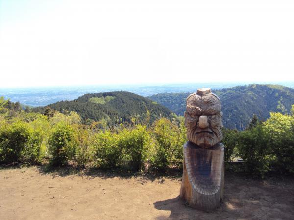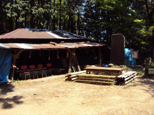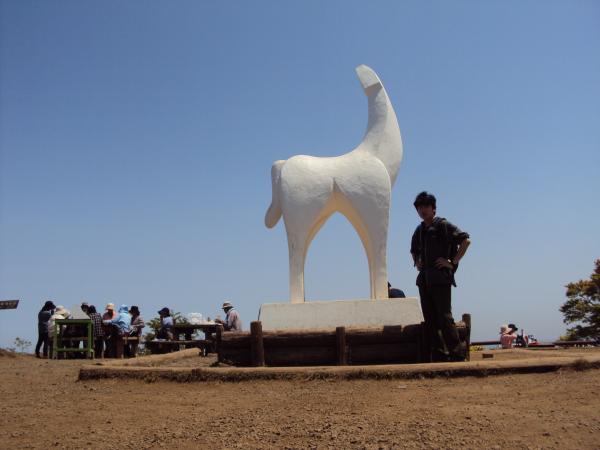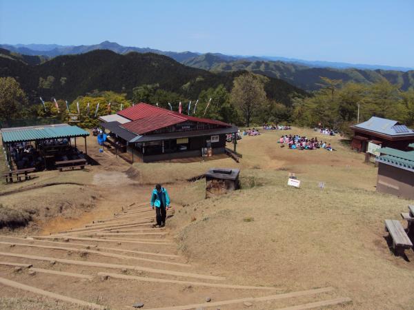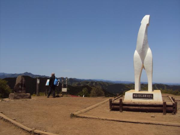 陣馬山山頂のオブジェ、そして付近を一望できる山小屋があなたを待っています。