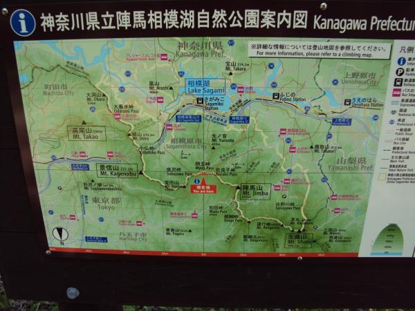 - 京王線高尾山口駅~高尾山山頂(59分)~城山山頂(43分)~小仏峠(9分)~景信山山頂(19分)~(8分明王峠(49分)~陣馬山山頂(23分)