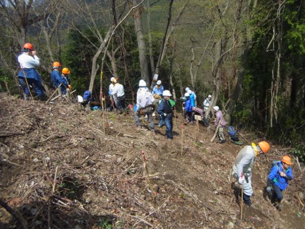 当日は裏高尾の小下沢ベースから1時間ほど登った場所に40本ほどの苗を植えました。将来、緑豊かな森になるのが楽しみです♪
