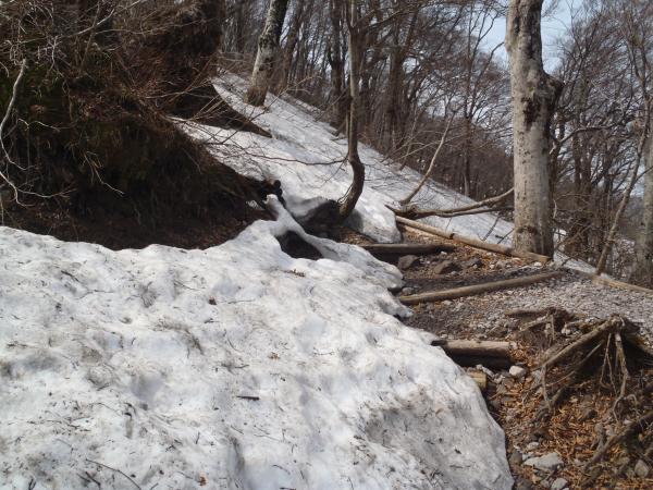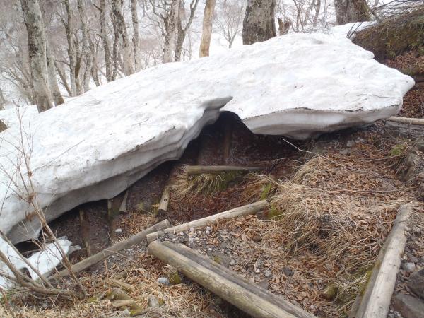 登山口から5合目までは雪があったりなかったりで抜け穴(落とし穴)がところどころありますので注意が必要です。雪があるからといってちょっと油断すると足がズボッと入ってしまいます。