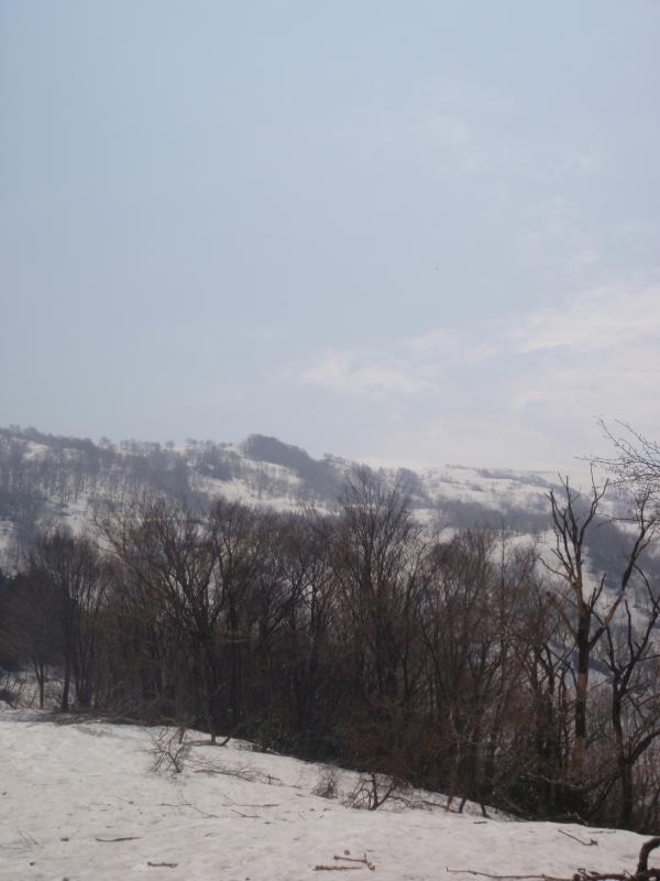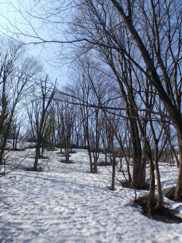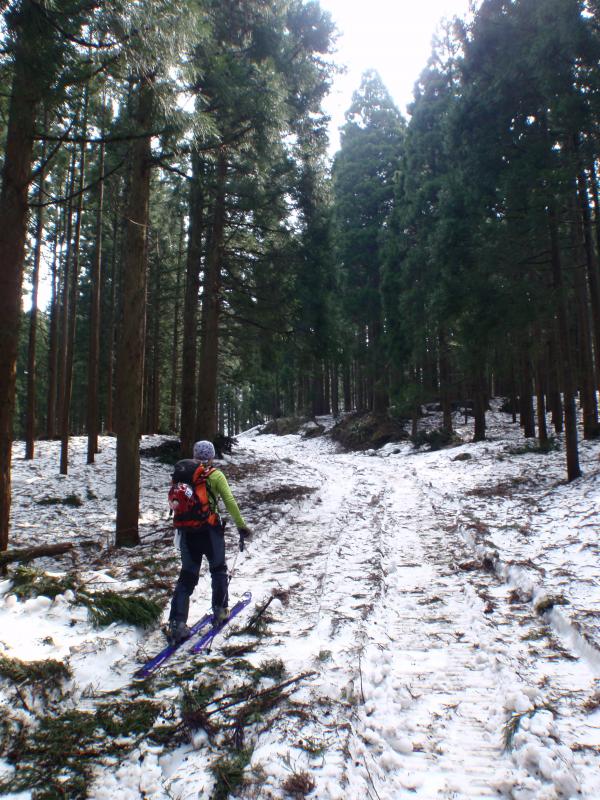 - 標高600m~800m付近の雪はところどころ切れており、スキーを担ぐ必要がある