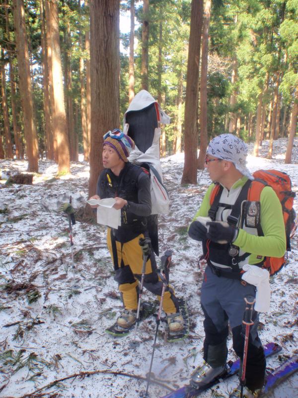 読図とスキーの担ぎ歩きで予想以上に時間がかかり、登りに6時間も費やしてしまいました。