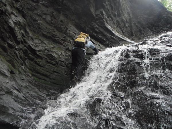 核心部は6mの大滝か!と思いきや意外にあっさり登れました。左側にステップが切ってあり、足場に不自由はしません。水量がそこそこあったので気持ちのよい登りでした。