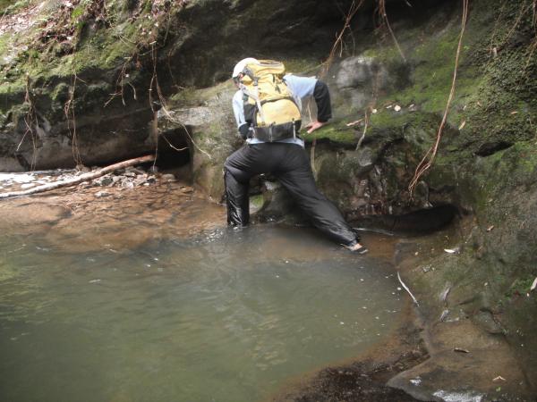 後はのんびり沢歩きかと油断していると次々に現れる釜に足下をすくわれます。ええすくわれましたとも。へつりに苦労させられる箇所もあり、本当の核心部はこっちだと思います。