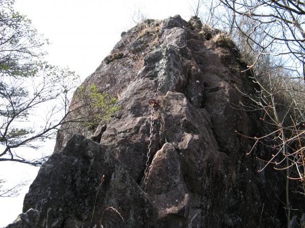 私が丁須の頭に着いたとき、しっかりしたクライミング装備の女性が2人で頂上に登ろうとしているところでした。「私たちは時間がかかるので、登るならお先にどうぞ」と言われたのでルートを確認したのですが、空身だと登れても下りが危険だと思い無理せず頂上は諦め、基部のところで休憩。そこからでも十分素晴らしい景色が見られます。