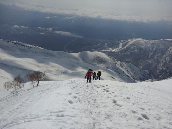 気温も暖かく、唐松岳頂上山荘まではスノーシューがお勧め。