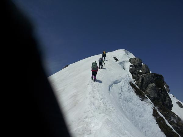 雪がやわらかく、歩くと底が抜け、腰まで、埋まることがたびたびありました。