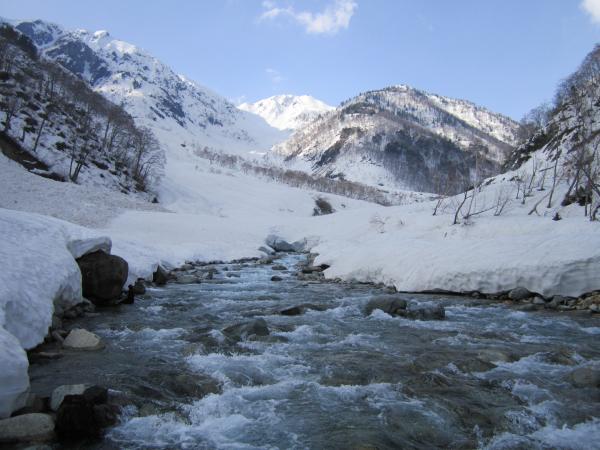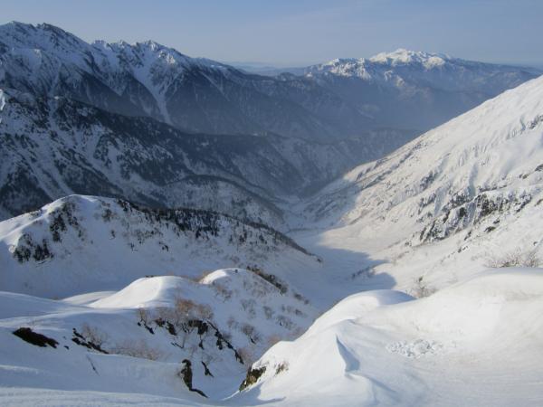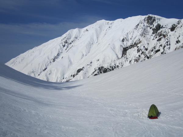 槍沢や飛騨沢のスケールには及ばないものの、南に面した明るい斜面であり、アプローチにも恵まれているので、1泊のテント山行に適した穴場的な山域ではないでしょうか?