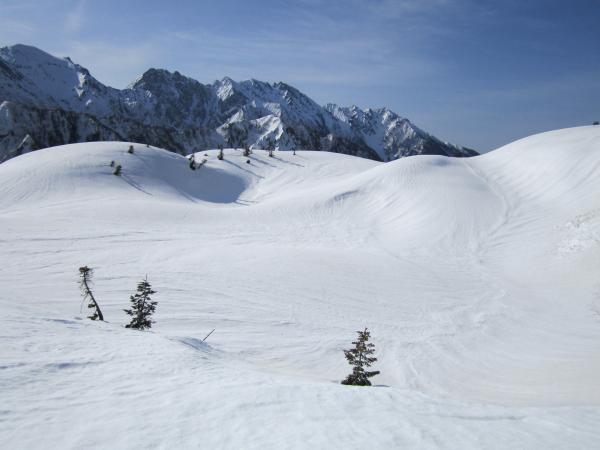 残雪の鏡平・弓折岳へ (北アルプス)