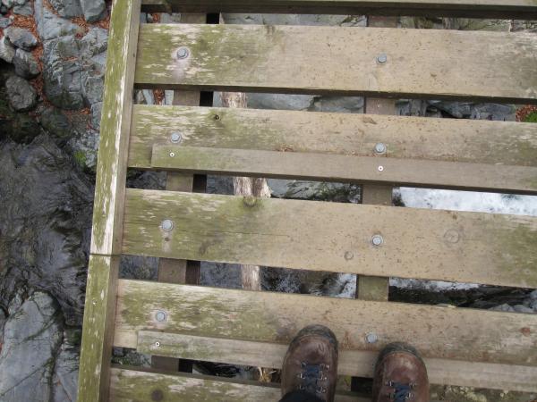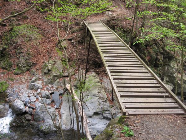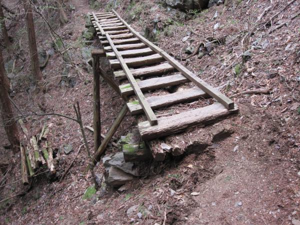 - 変化に富んだ楽しいコースですが、足場の悪い階段や、ぐらつく橋を渡る箇所、倒木が多いので、足を滑らせないよう注意が必要です。