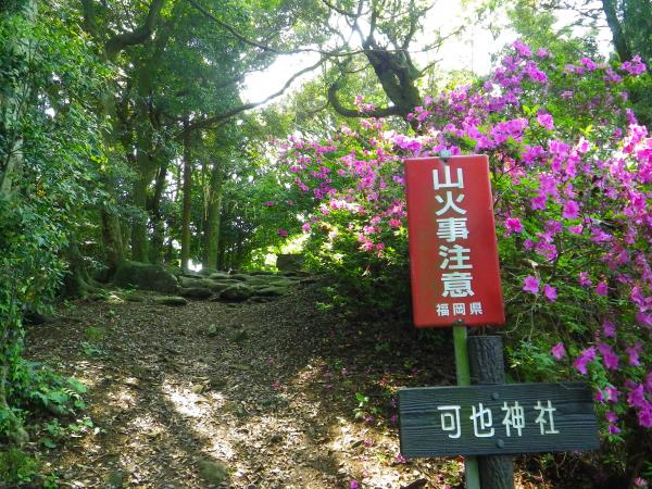 - 登山口P→30分→石切場跡→36分→可也山山頂→45分→石切場跡→39分→登山口P